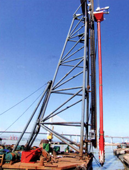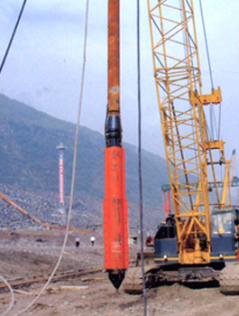 振沖器是振沖法施工中的特制機具。它產(chǎn)生水平向振動力振擠填料及周圍土體,而達到提高地基承載能力、減少沉降量、增加地基穩(wěn)定性、提高抗地震液化能力。 振沖法施工時除原地沖器外,尚需行走式起吊裝置,泵送輸水系統(tǒng),控制操作臺等。如工程單位缺乏起重機,本廠還供應振沖器施工樁架,樁架有單邊滾管立柱式、液壓步履式、簡易履帶式等。